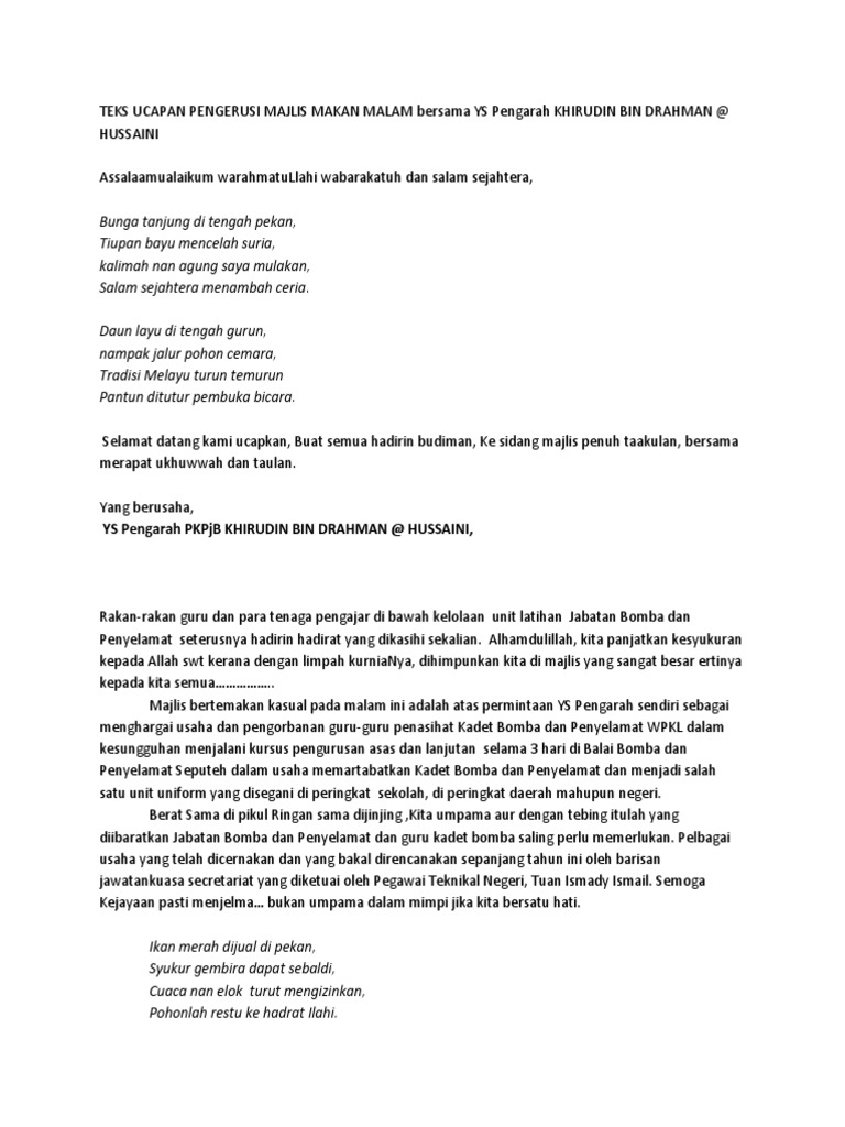Teks Ucapan Pengerusi Majlis Makan Malam Bersama Ys Pengarah Pdf